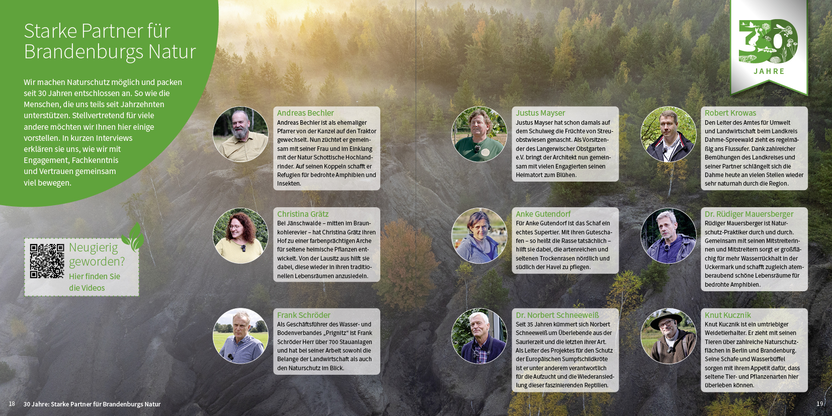 Zum 30-jährigen Jubiläum der NaturSchutzFonds Brandenburg, gestaltete motus einen ganz besonderen, 84-seitigen Jahresbericht für 2024. Für die Titelseite entwickelte motus ein Keyvisual, das die vielfältige Fauna und Flora Brandenburgs mit der Jubiläums-30 vereint. Außerdem ziert das ebenfalls von motus gestaltete Jubiläums-Logo die Jubiläums-Doppelseiten, die auf die 30-jährige Geschichte der Stiftung zurückblicken.